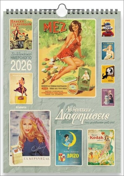 Μόλις κυκλοφόρησε το ολοκαίνουργο ημερολόγιο τοίχου, με 12 διαφημίσεις που άντεξαν στο χρόνο και επιστρέφουν νοσταλγικά, για να μας θυμίσουν τα πρώτα χρόνια της καταναλωτικής μας αθωότητας. 12 αυθεντικές διαφημίσεις, μια για κάθε μήνα. Θα το βρείτε σε όλα τα βιβλιοπωλεία και στα ηλεκτρονικά τους καταστήματα.